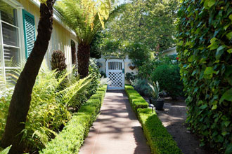 Enchanting, sunny & romantic Montecito cottage/condo hidden down a private lane in the Upper Village. Part of a two-unit condo, this cottage is unique in that the only common area is a walkway. You own your land and swimming pool.