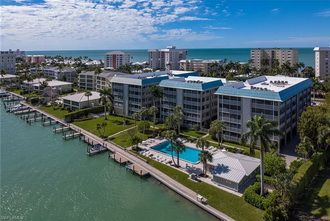 Life's finer moments can have no more appropriate setting — on the boulevard directly across the street from the beach with easy access. You'll love this sparkling two-bedroom, two-bath condominium loaded with character and charm. Designer touches with a custom architectural wall element in the living room. Direct Gulf access, no bridges. Large heated pool next to the bay. New pool pavers and outdoor furniture. Barbecue grill and herb garden for your cooking pleasure too. Windsor Court has beautifully maintained grounds and landscape. Soak in glimpses of the Gulf and the warm glow of sunsets from your glassed lanai. Now invite your friends to come, sit back, relax and sip on a cool drink. Just steps away from shopping, fine dining and Venetian Village. The ownership allows you to become a member of the private Moorings Beach Club. Come visit and see why you will enjoy this casual yet sophisticated lifestyle.