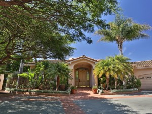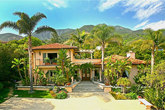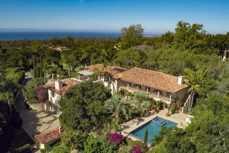 Situated up a private lane, immaculate 2-story gated villa with majestic ocean and mountain views and exquisite rooms of grand proportions. Luxurious master suite with private, romantic deck overlooking the Pacific Ocean. 4 bed suites and 4.5 baths, wood-paneled library with coffered ceiling, and gourmet kitchen opening into gracious family room. French doors lead to pool and yard with rock waterfall.